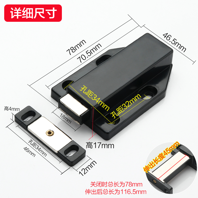 Large number self-bounced ball Rebound Instrumental Suction cabinet suction wooden door strong magnetic touch door suction spring concealed style door touch handle black