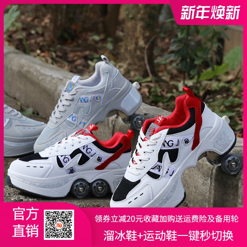 Shivering with the same kind of explosive walking shoes Shoes Deformation Shoes Adult Wheels Skating four wheels Ice Men and men Invisible Wheels Sneakers