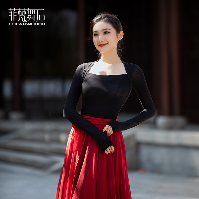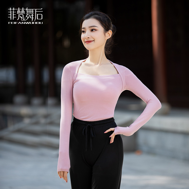 Dance blouses woman long sleeve back shoulder style Hepburn body training to ballet modern national classical dance practice
