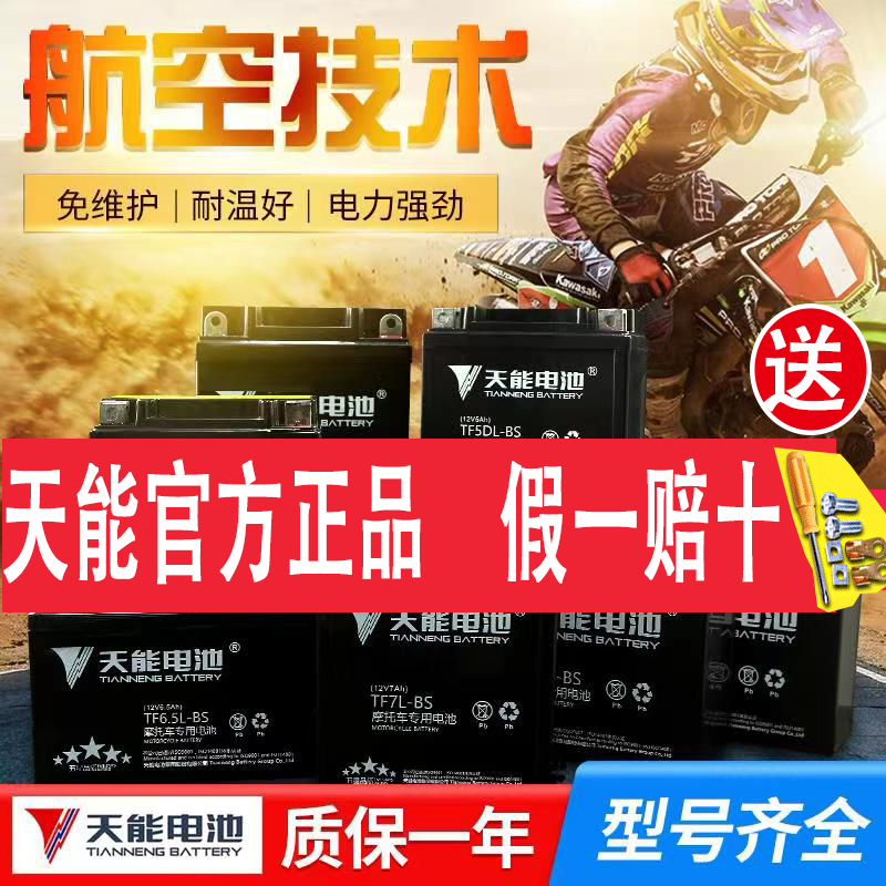 Tianneng motorcycle battery 12V maintenance-free curved beam booster 125 pedal tricycle 7A9A dry battery universal