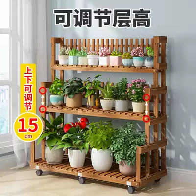Solid wood flower rack shelf Multi-layer mobile golden ge shelf Flower rack Balcony wall living room floor-to-ceiling plant rack