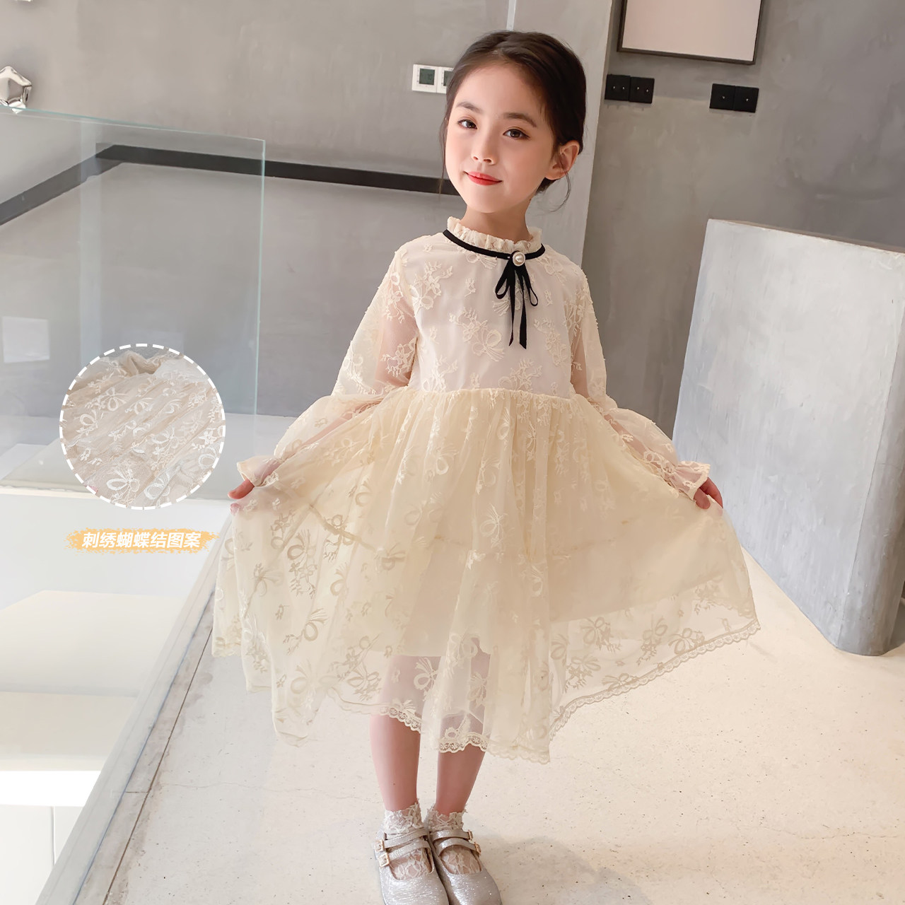 (Ex-gratia Flush) Left Western Children's Dress Girl Foreign Dress Children Princess Lace Mesh Yarn Dresses Spring 2022 New