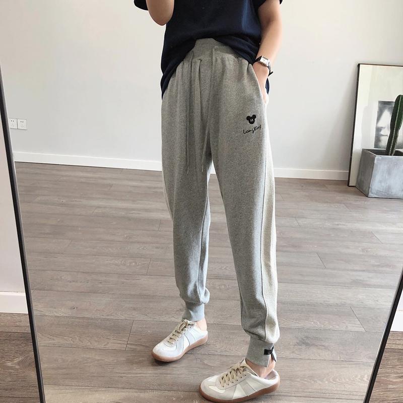 Grey sports pants women's spring and autumn loose bundle feet thickening and thin all-match plus velvet nine points straight casual thick cotton pants tide brand