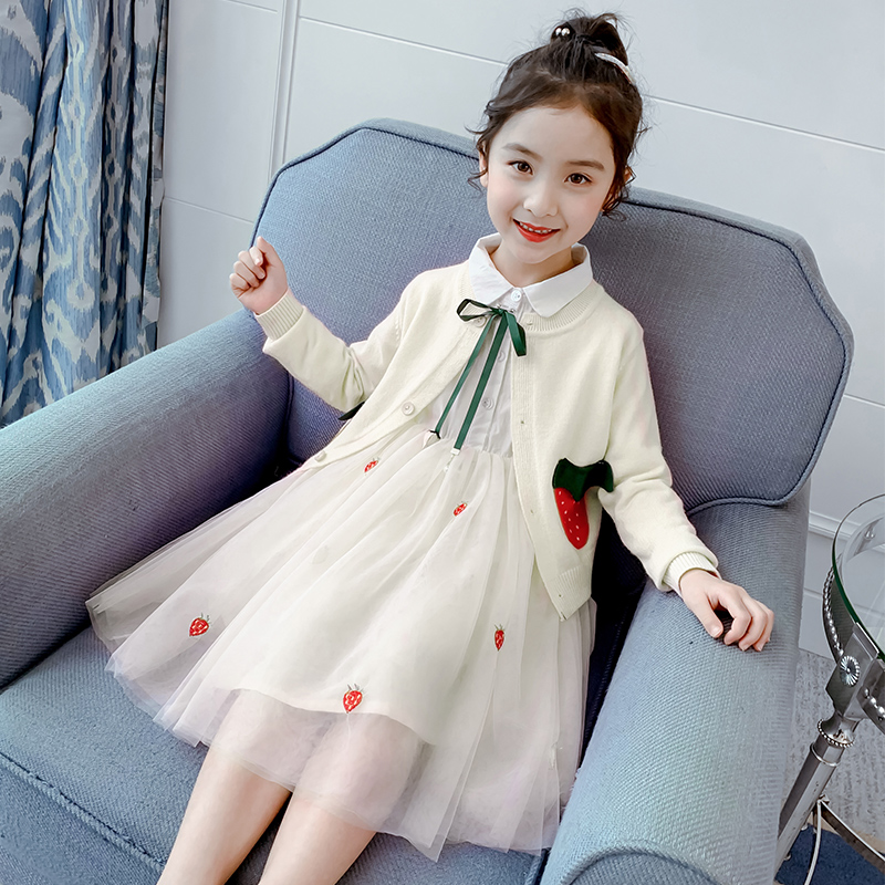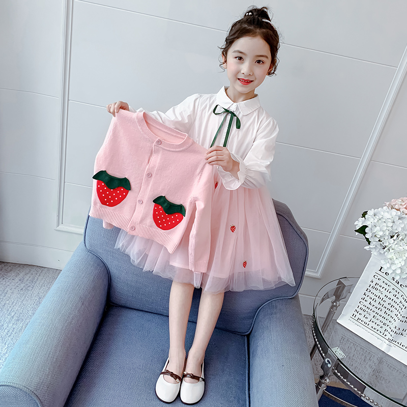 Girl's autumn clothing suit 2021 new children's clothing online red little girl's knitted sweatshirt skirt Children princess dress Two sets