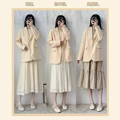 Chuan Dai:She said casual small suit suit two-piece embroidered suit jacket girl pleated skirt