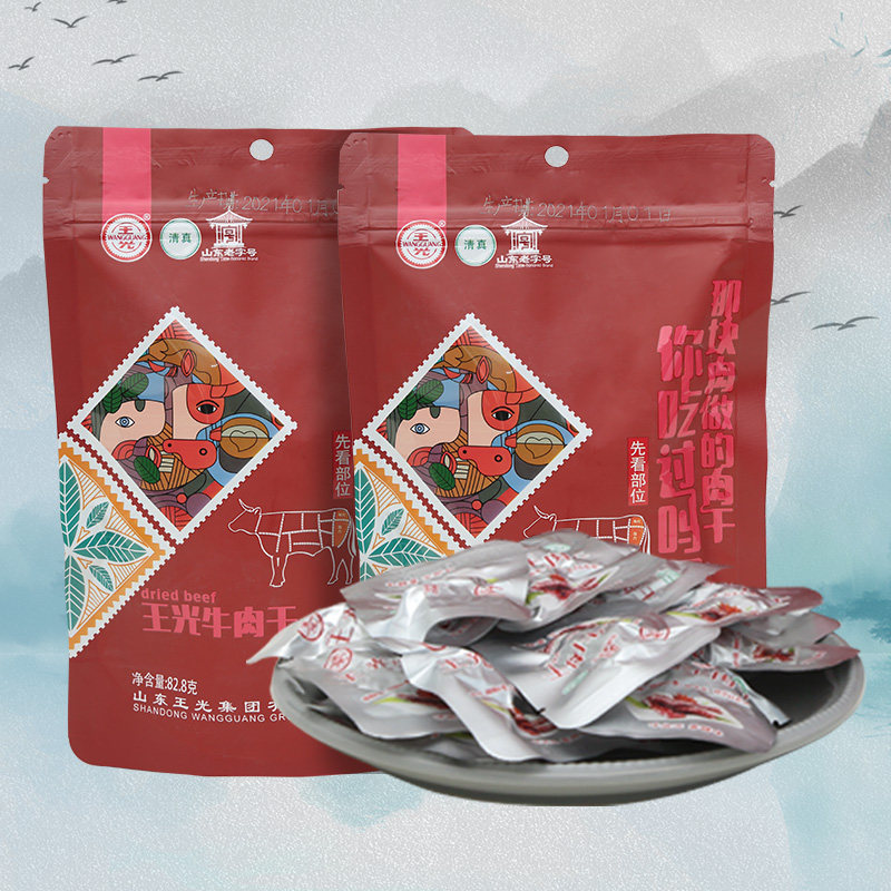 Wang Guangniu meat dry Shandong special cooked food snack vacuum open bag ready-to-eat 82 8g * 2 bags of small bag bulk