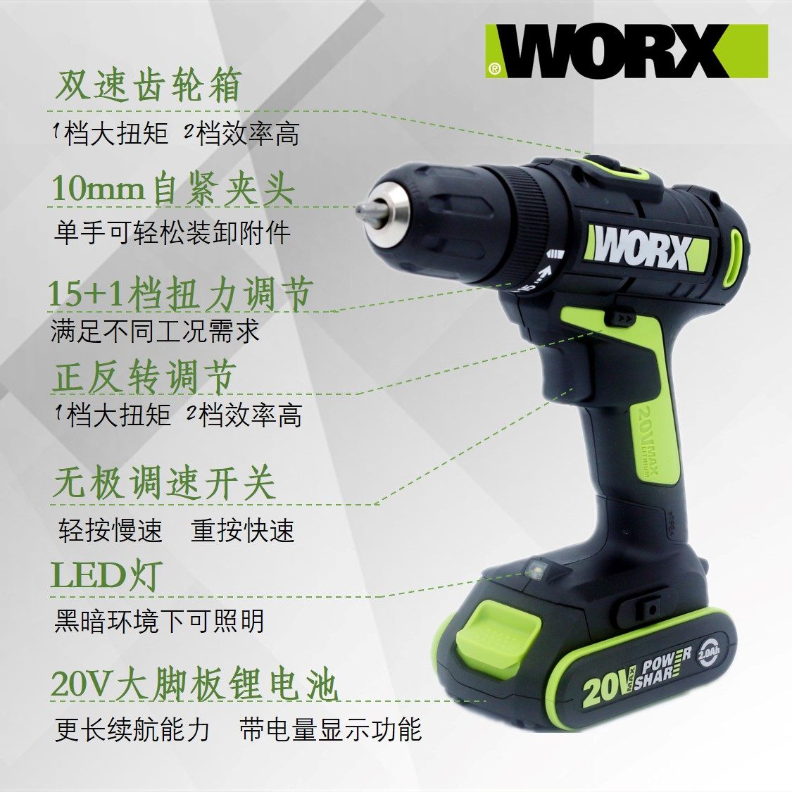 Wicks big foot board WU172 wireless drill WORX lithium battery industrial-grade screwdriver light punching tool