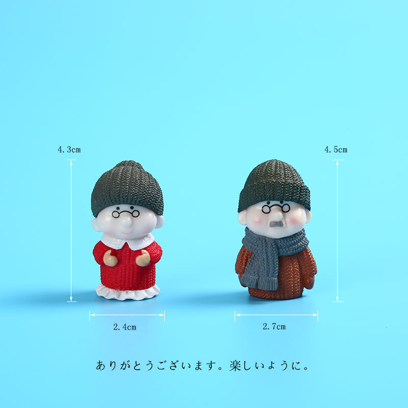 Cute simulation cartoon old grandpa and grandma doll miniature model micro landscape desktop small ornament puppet character
