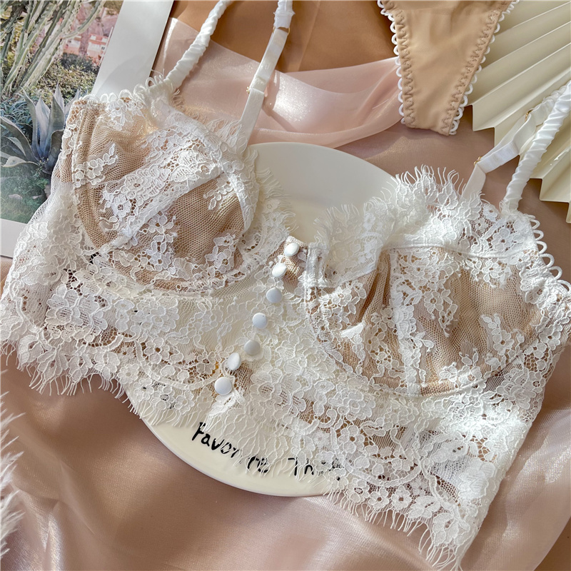 French Lace Harness Bra Hood Slim Fit Large Chest Display Small Seductive Seductive With Steel Ring Comfort Vest Lingerie Suit