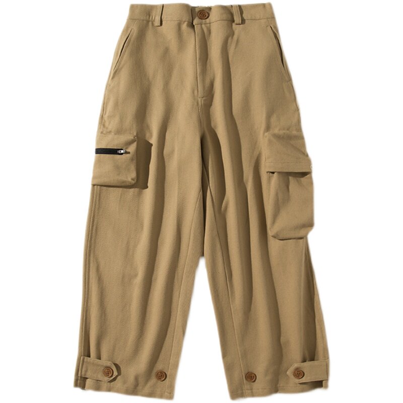 Day Series Tide Card Broadlegged Pants Asymmetrical Pocket Card Its Color Engineering Pants Loose Straight Drum Casual Pants Male Pants