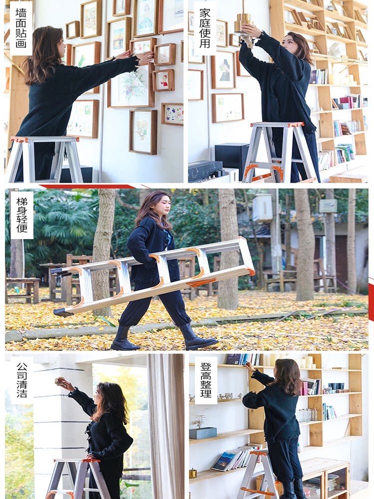 Openg ladder 2 meters 5 meters thickened aluminum alloy home folding telescopic aluminum ladder multi-functional indoor stairs herringbone ladder
