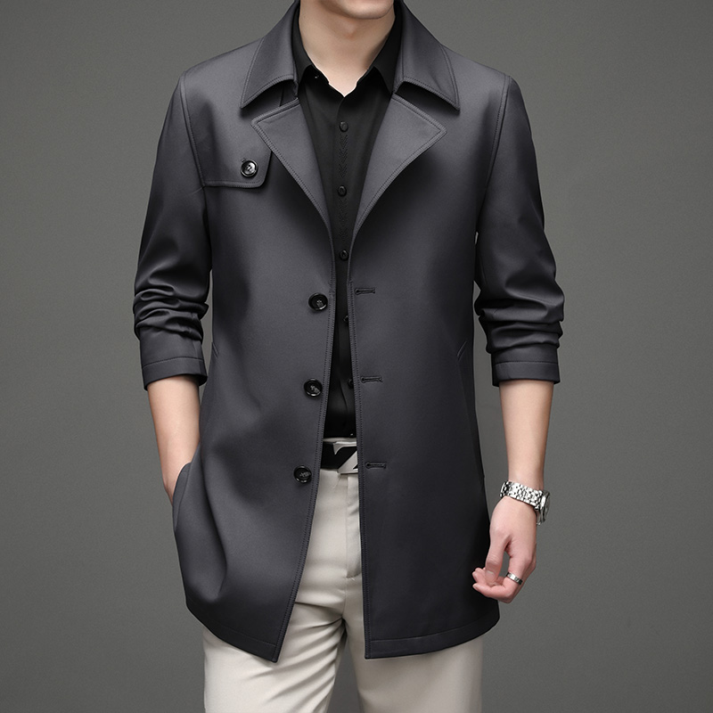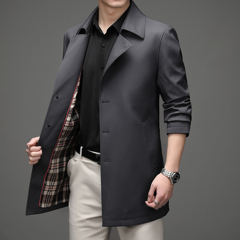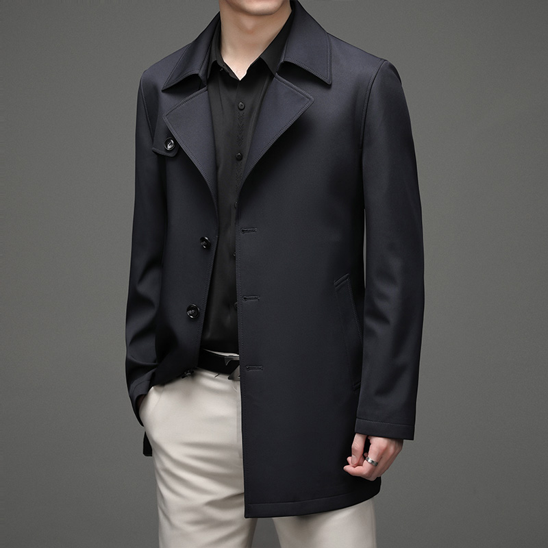 Woodpecker windbreaker men's medium and long version of spring and autumn business casual suit collar top middle-aged loose large size jacket tide