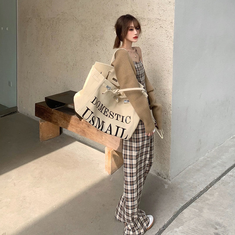 Pants women's 2021 new fashion small temperament fashion plaid suspender jumpsuit casual wide leg mop pants