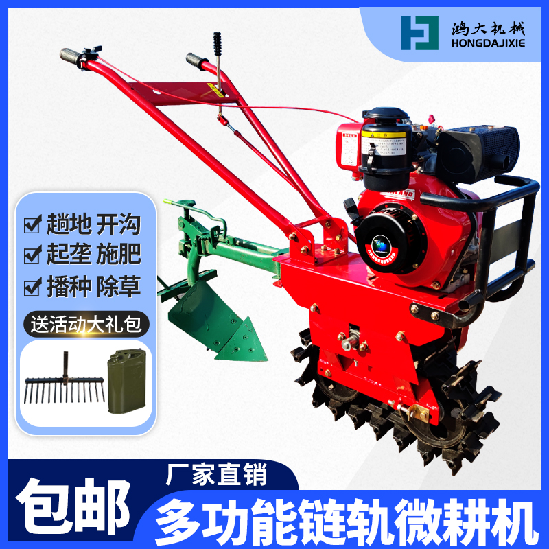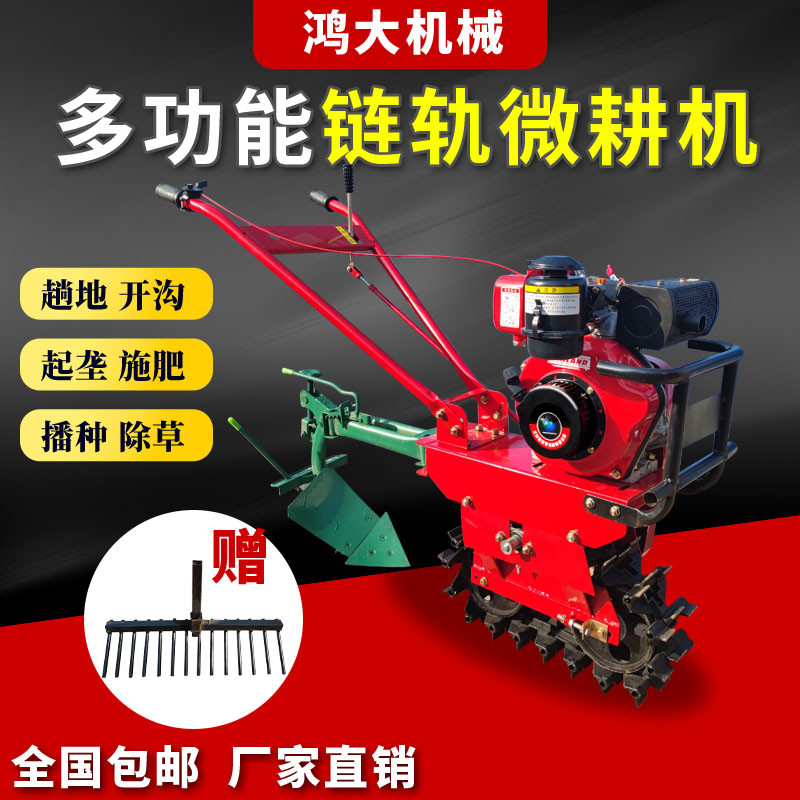 Track chain rail diesel micro-cultivator ditching and sowing loose soil arable land for agricultural new type mountain small ploughing