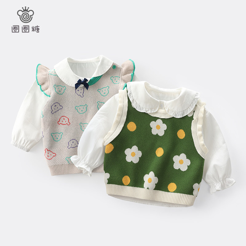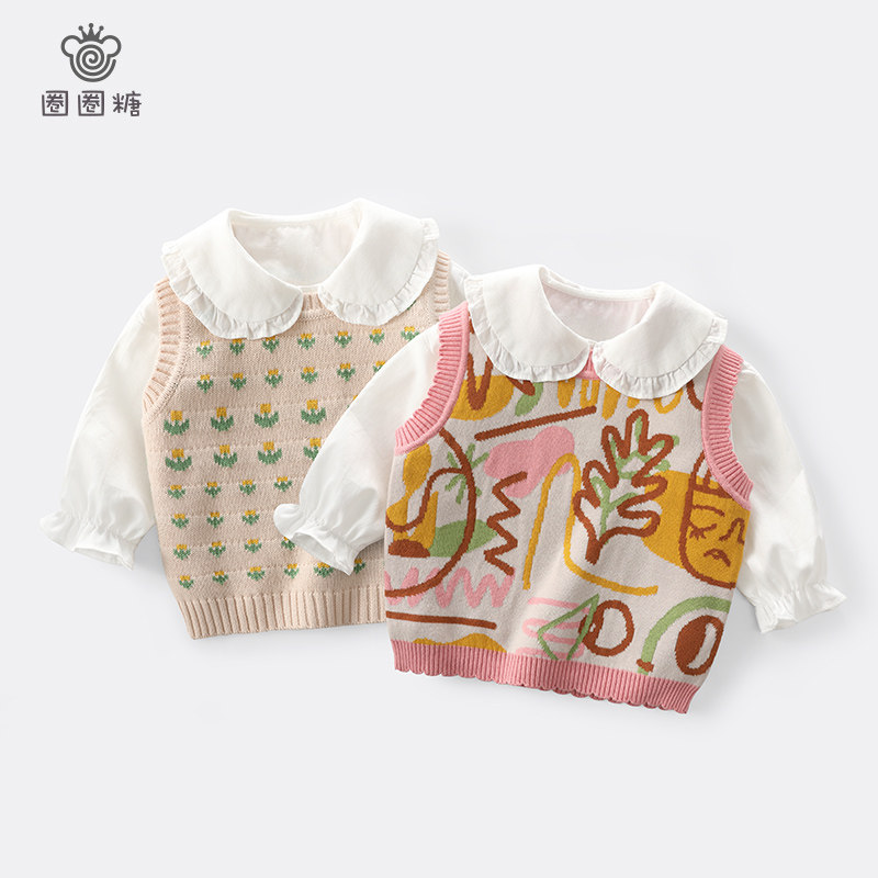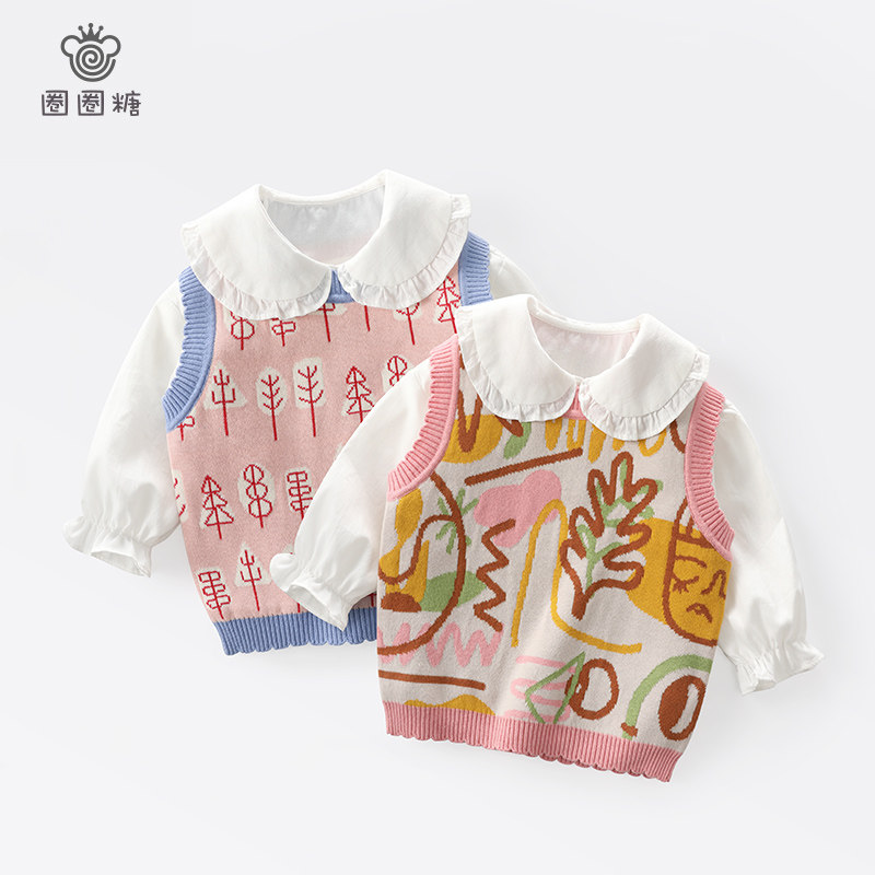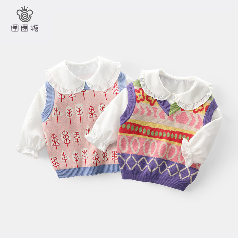 Circle Circle Sugar Girl Knit Vest Children Waistcoat Vest Sweater New Foreign Pie Trendy Net Red Waistcoat shoulder sleeve head