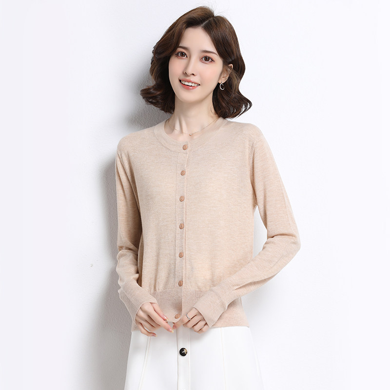 Goat Sweatshirt Woman Cardiovert 100 Pure Wool Lady Knit Jacket Autumn Dress Round Collar Long Sleeve Foreign Wear Small Shawl Outside