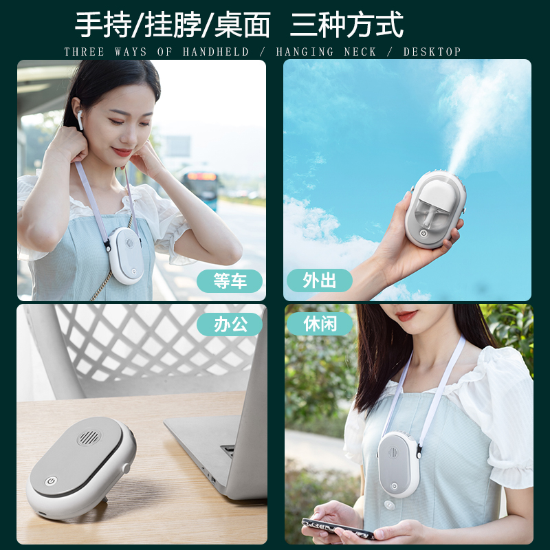 Hanging Neck Small Fan Spray Refrigeration Portable students Small Sloth Fan Water Spray Cold Air Mini rechargeable Handheld usb electric fan Children hanging neck Tabletop Muted Dorm Room Wearing f