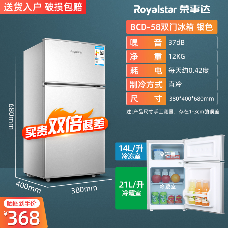 BCD-58 double door Gold (rental home Special) BCD-58 double door Silver (rental home Special) BCD-58 double door fashion blue power saving silent (New