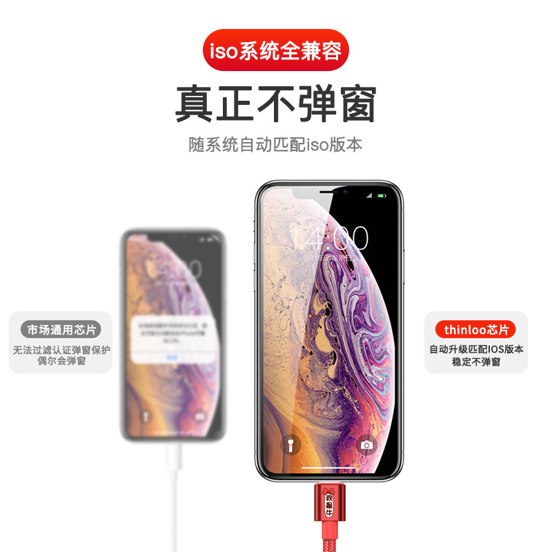 thiniloo data line suitable for Apple x data line iPhone12 phone charging line 6s7P13 charging wire lengthened 11pro fast charging 2 m ipad8Plu