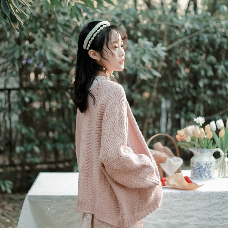 Herringbone knitted cardigan women's thin outer layer 2022 early autumn new loose and lazy style spring and autumn sweater coat