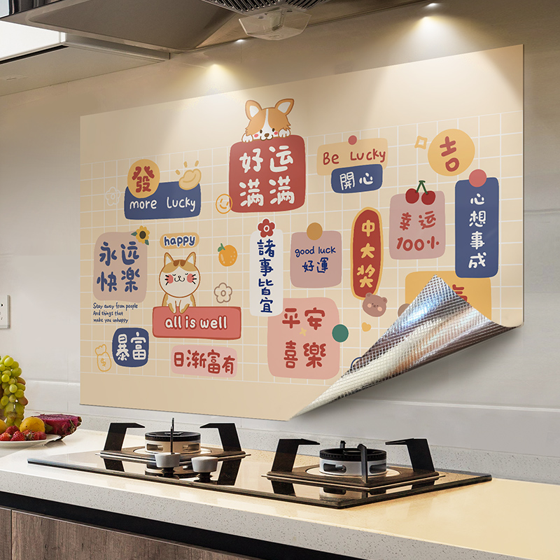 Kitchen oil-resistant stickers fire resistant high temperature waterproof countertop cooktop from adhesive wall papers wall cloaking