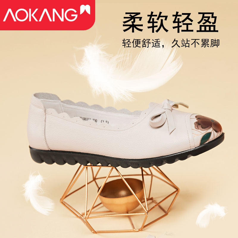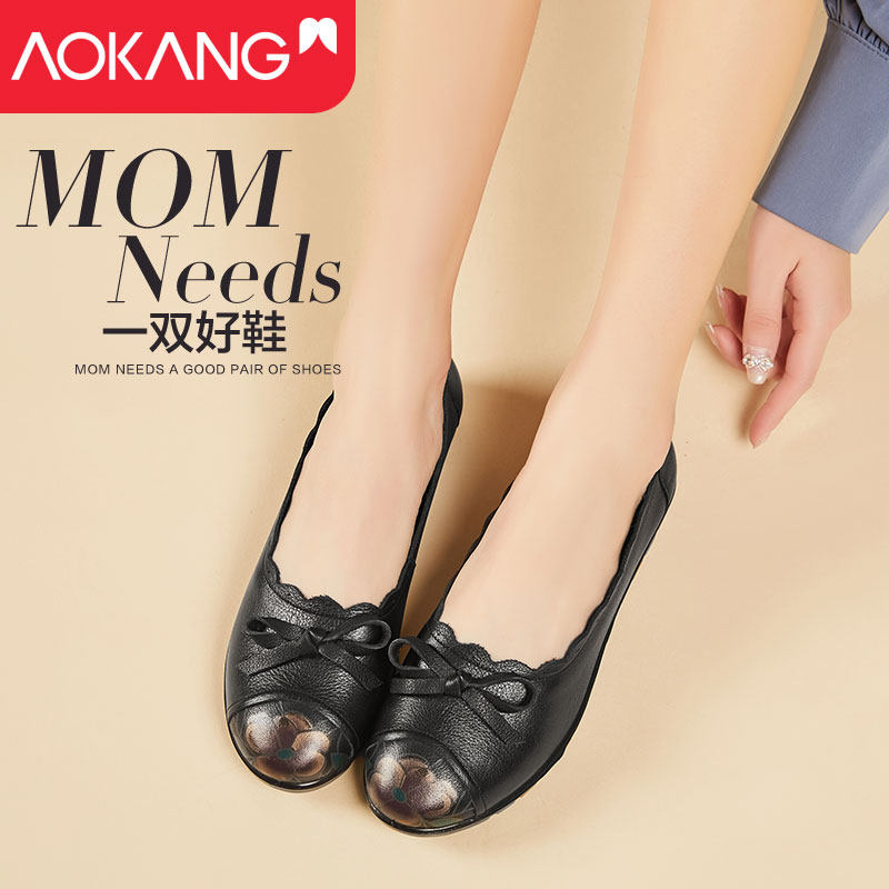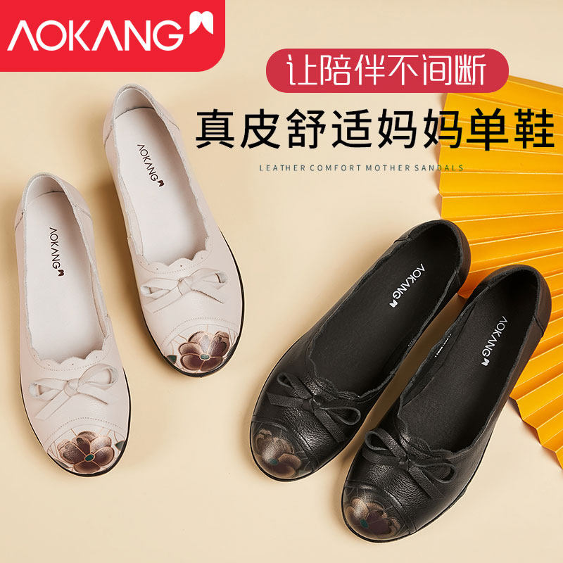 Aokang women's shoes spring and autumn soft bottom middle-aged and elderly mother's shoes fashion comfortable flat shoes leather non-slip women's leather shoes