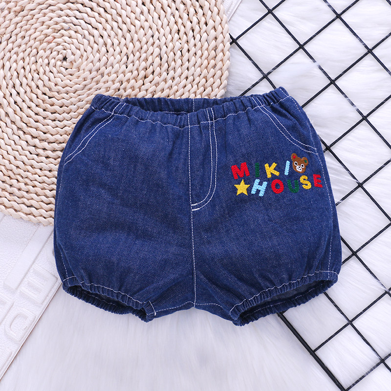 miki children's clothing *PP pants 2021 Summer money for male and female children pure cotton cartoon Alphabet Bear Rabbit Embroidered Denim Shorts