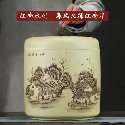 Zisha painted tea waking tea cans painted Jiangnan water Township home Tea waking tea cans handmade mud painting cans raw mineral materials