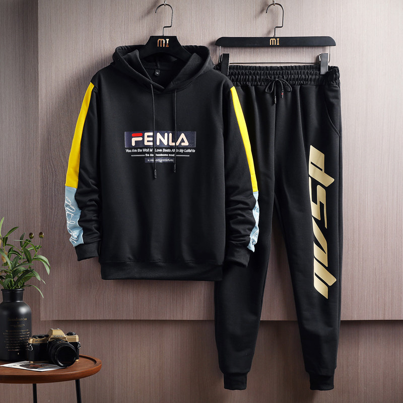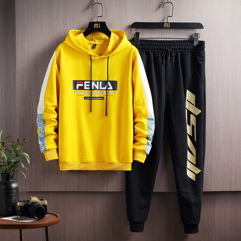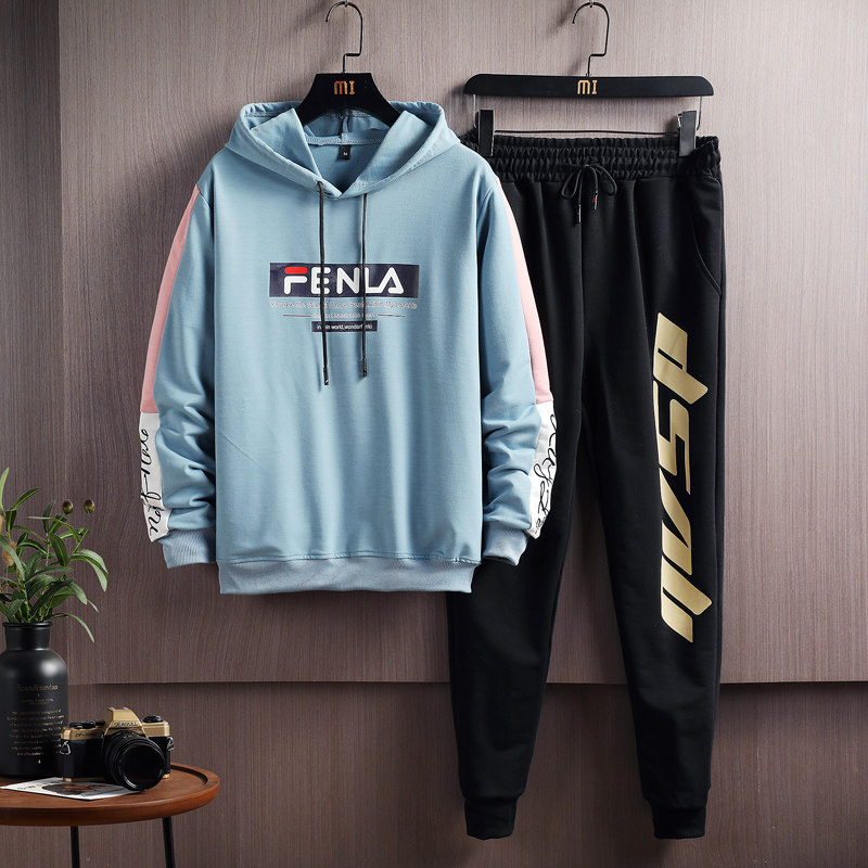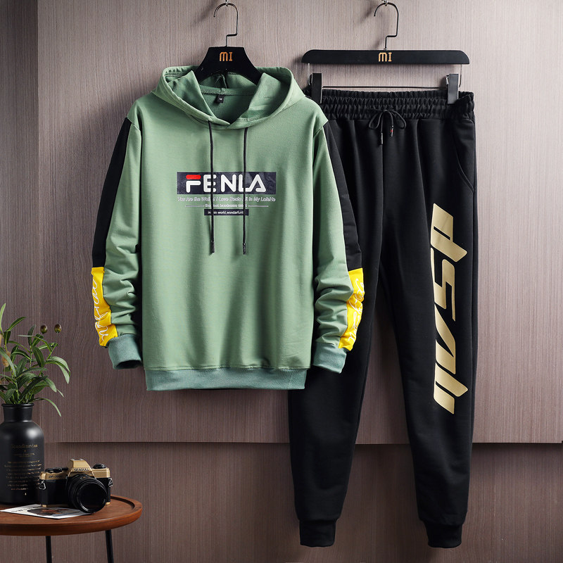 Teen sweatshirt suit Male hooded 2021 spring and autumn Korean version of the trend of student blouse pants with two sets