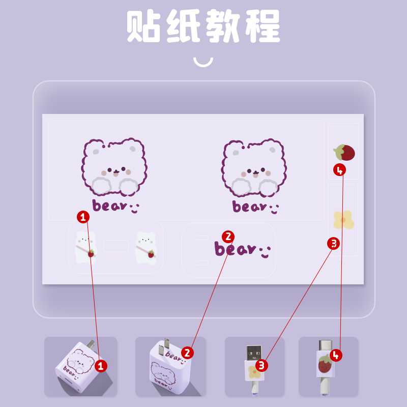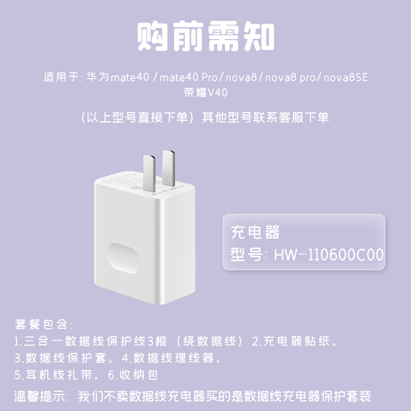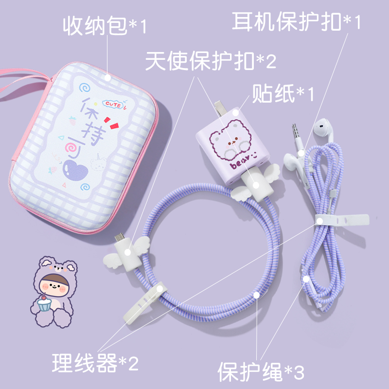 Data cable protective sleeve Huawei Mate40pro nova8 pro RS mobile phone charger head anti-break anti-stain special charging cable earphone winding rope cartoon sticker