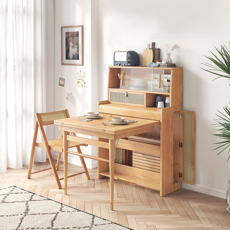 Warners Japanese-style folding dining table and dining cabinet integrated household small apartment Nordic solid wood feet can store dining table and chairs