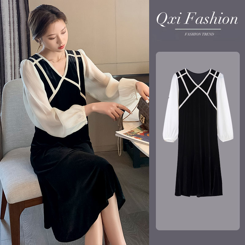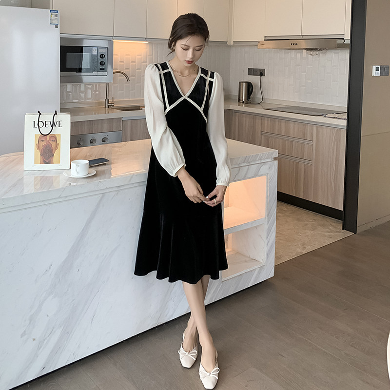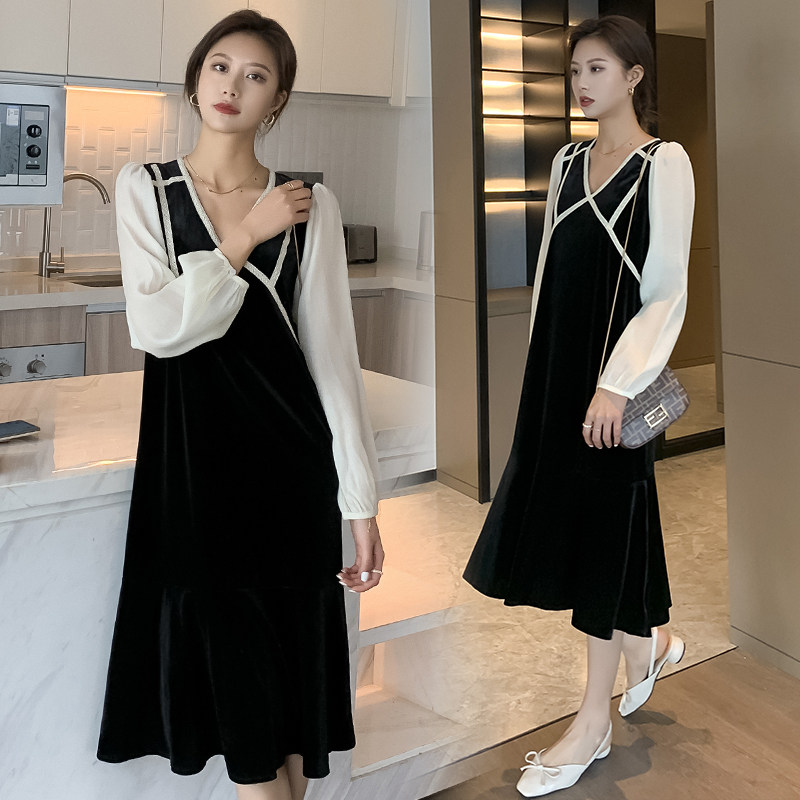 2021 spring new maternity dress mid-length version of the western style net red tide mother long skirt over the knee fashion temperament to reduce age