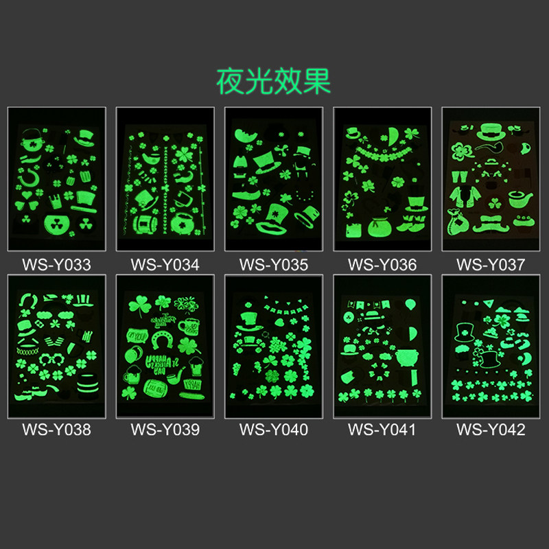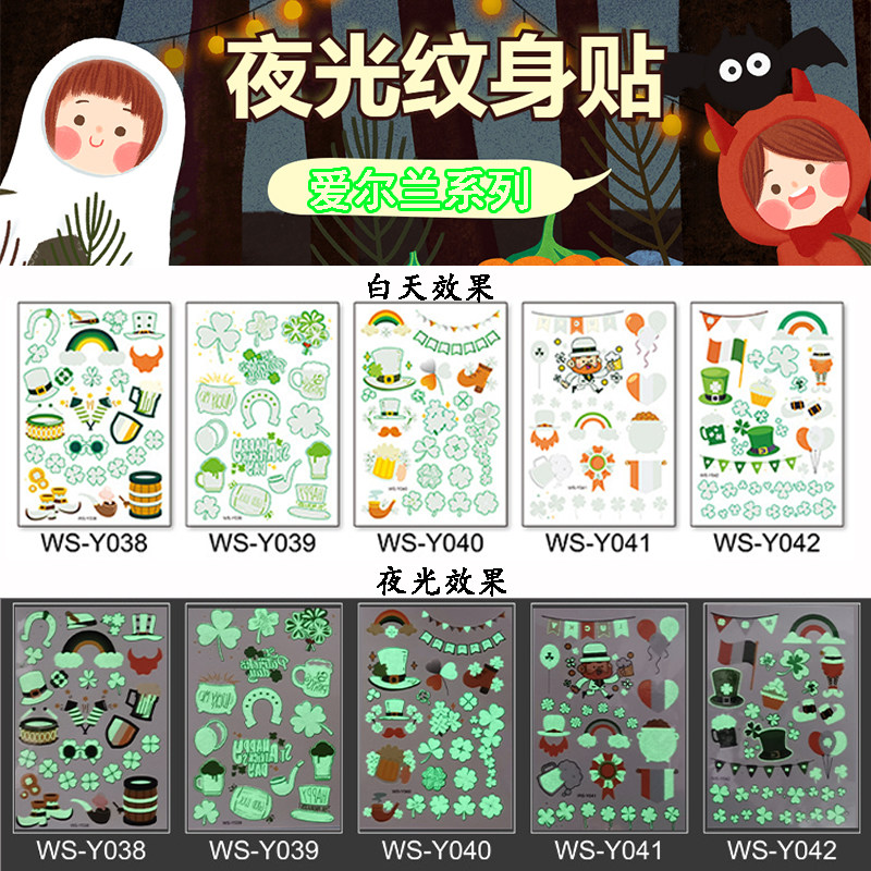 St. Patrick's luminous tattoo patch waterproof fluorescent green children disposable fluorescent Irish luminous sticker paper