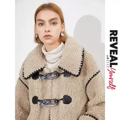 ELLE (warm and thick) Winter new leather trim fashion Shell buckle hook edge long version fur coat women