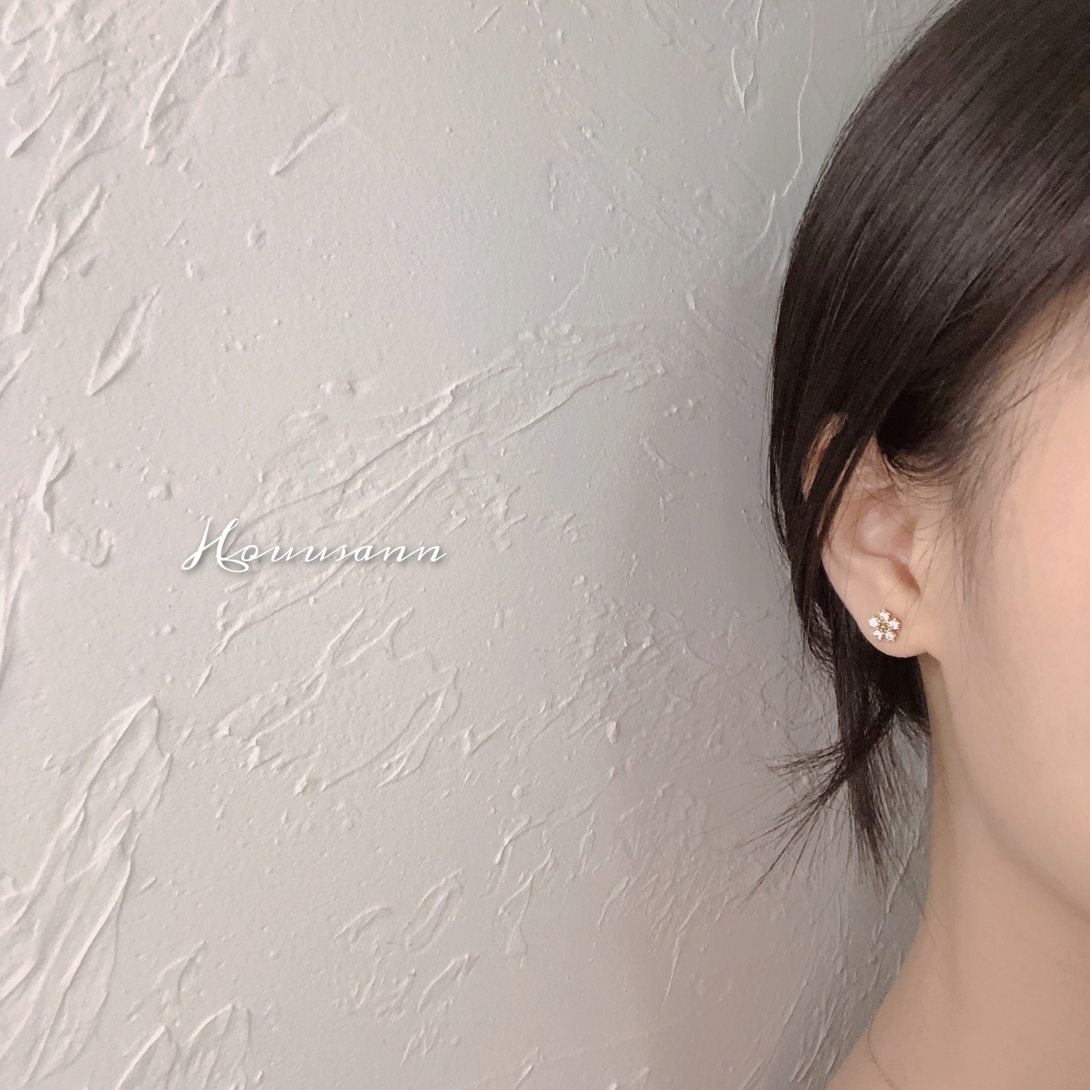 s925 silver needle petal earrings temperament mini small sparkling crystal stone ear jewelry small daisy ear bone earrings female