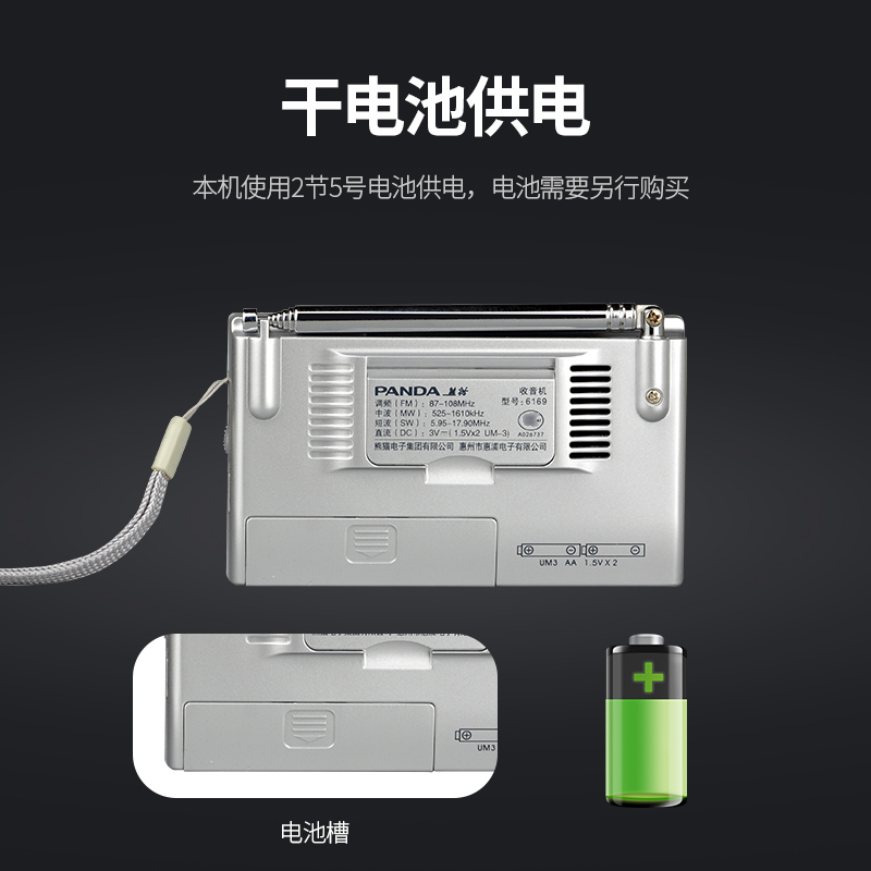 Panda 6169 dry battery radio dedicated for the elderly new portable elderly full-band semiconductor old-fashioned nostalgic FM radio large volume signal strong small mini pocket outdoor