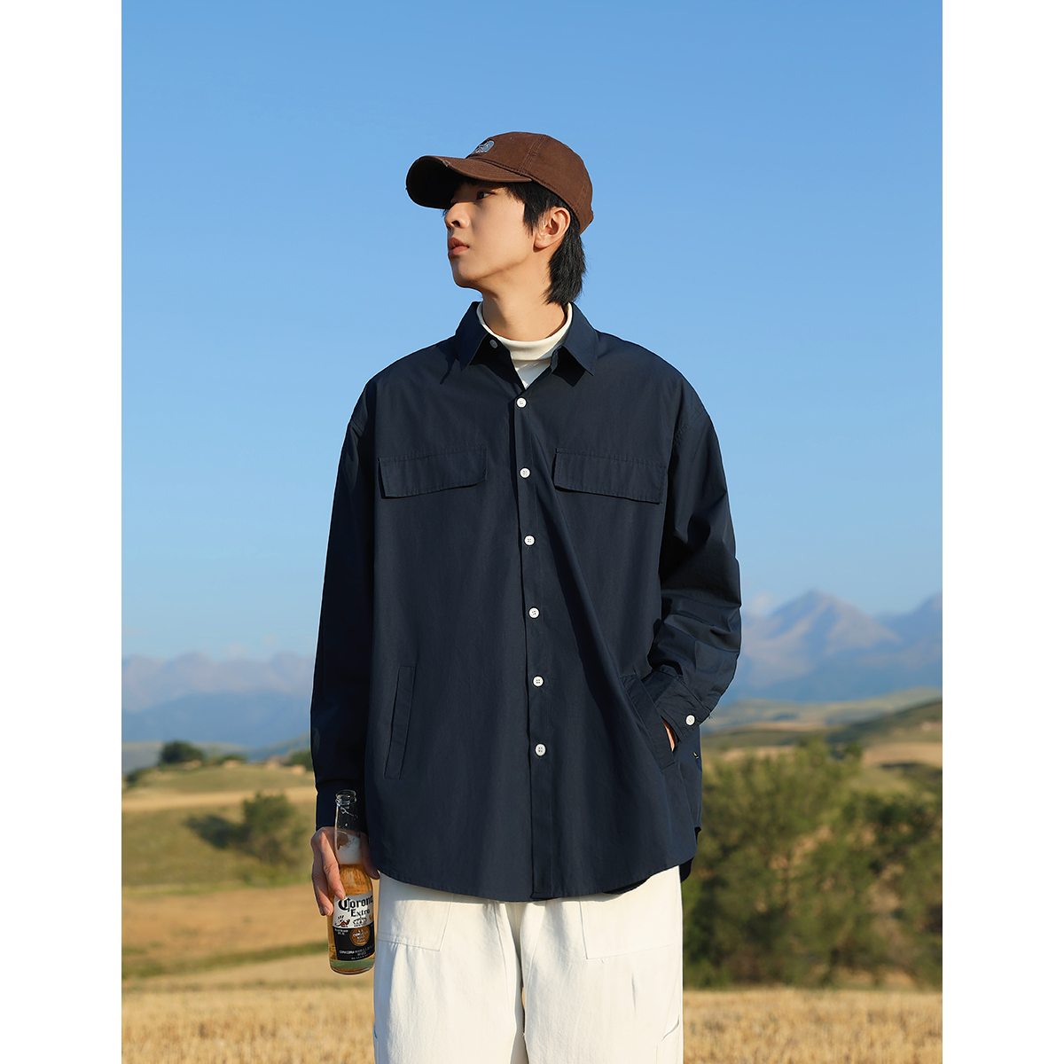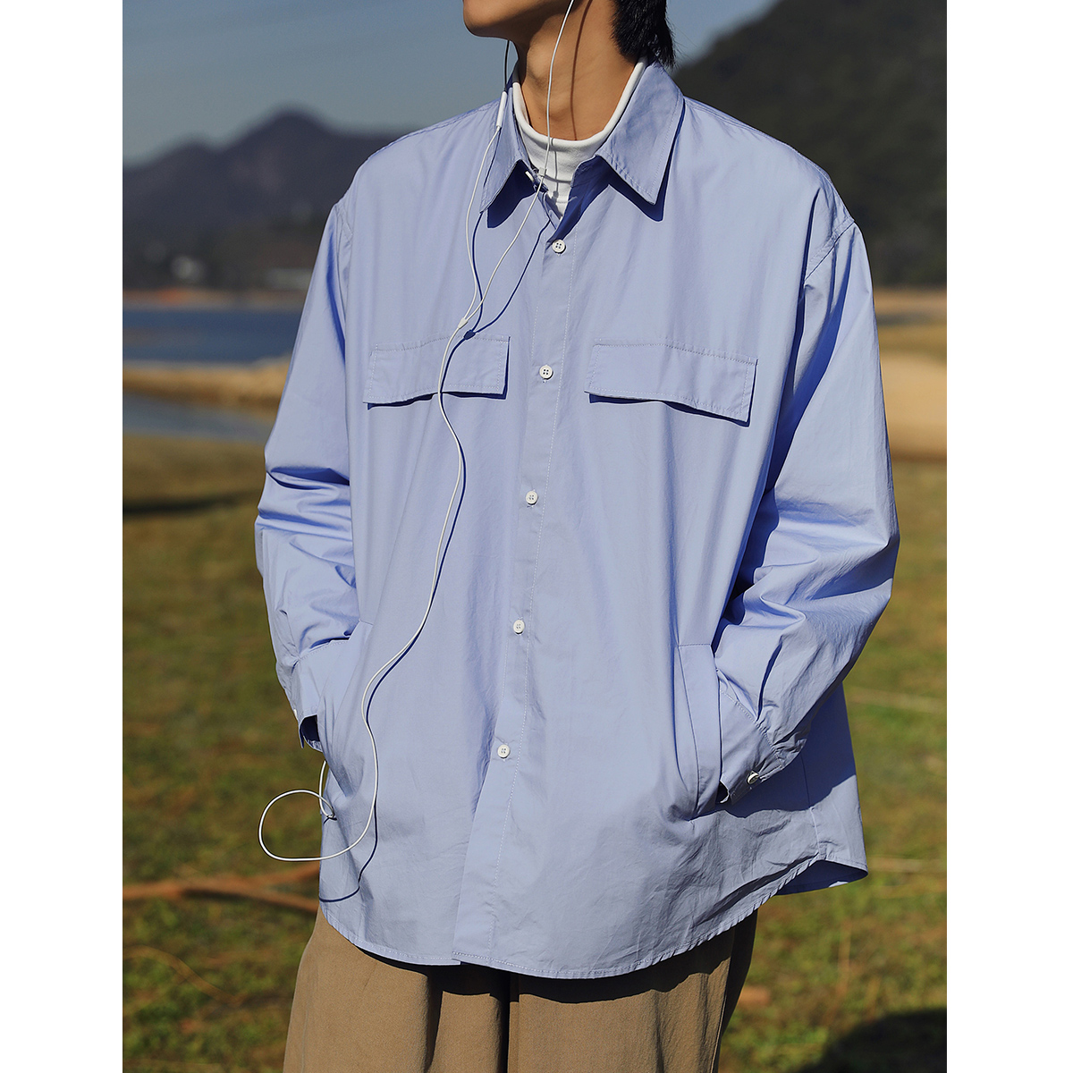 KOUEMGI air flavor Japanese casual versatile long-sleeved city boy shirt men's lapel slip pocket cargo shirt