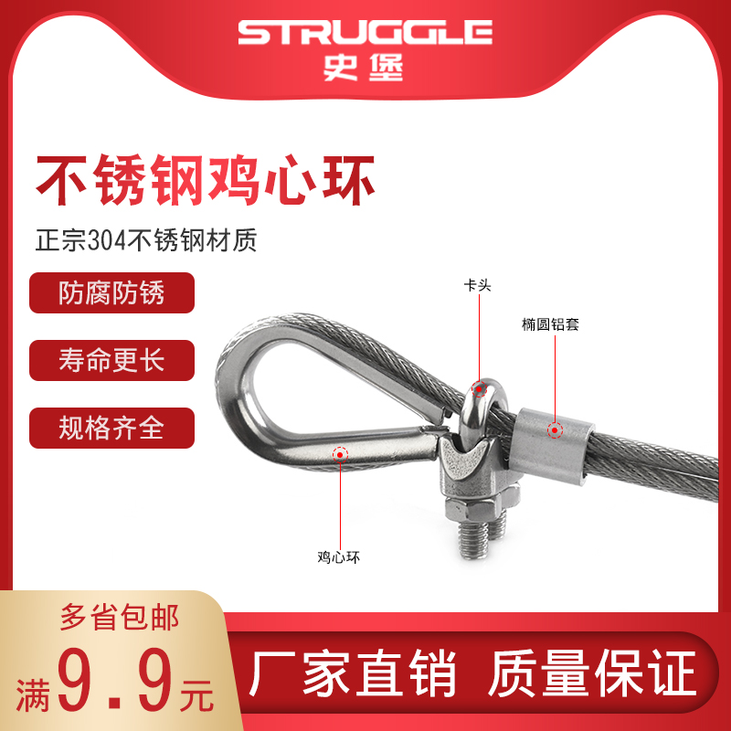 304 stainless steel cock ring wire rope protection ring triangular ring jacket ring M2 3 4 5 6 8 10mm