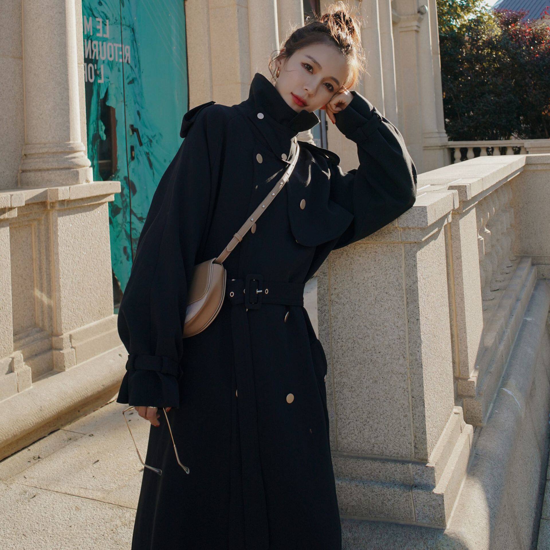 Black Fat Sister Windsuit Woman Mid 2022 New Fat mm Large size Korean version over knee coat jacket 200 catty