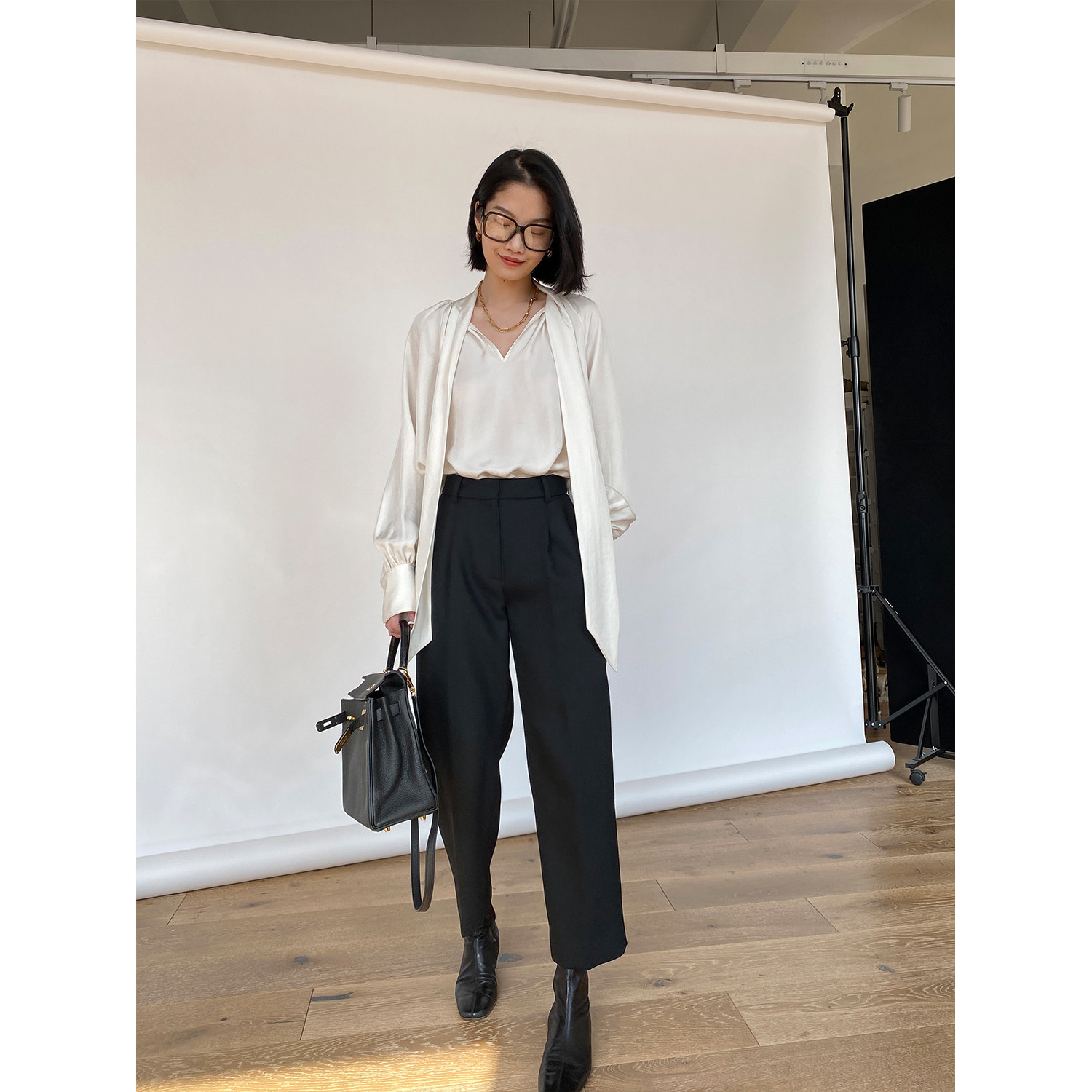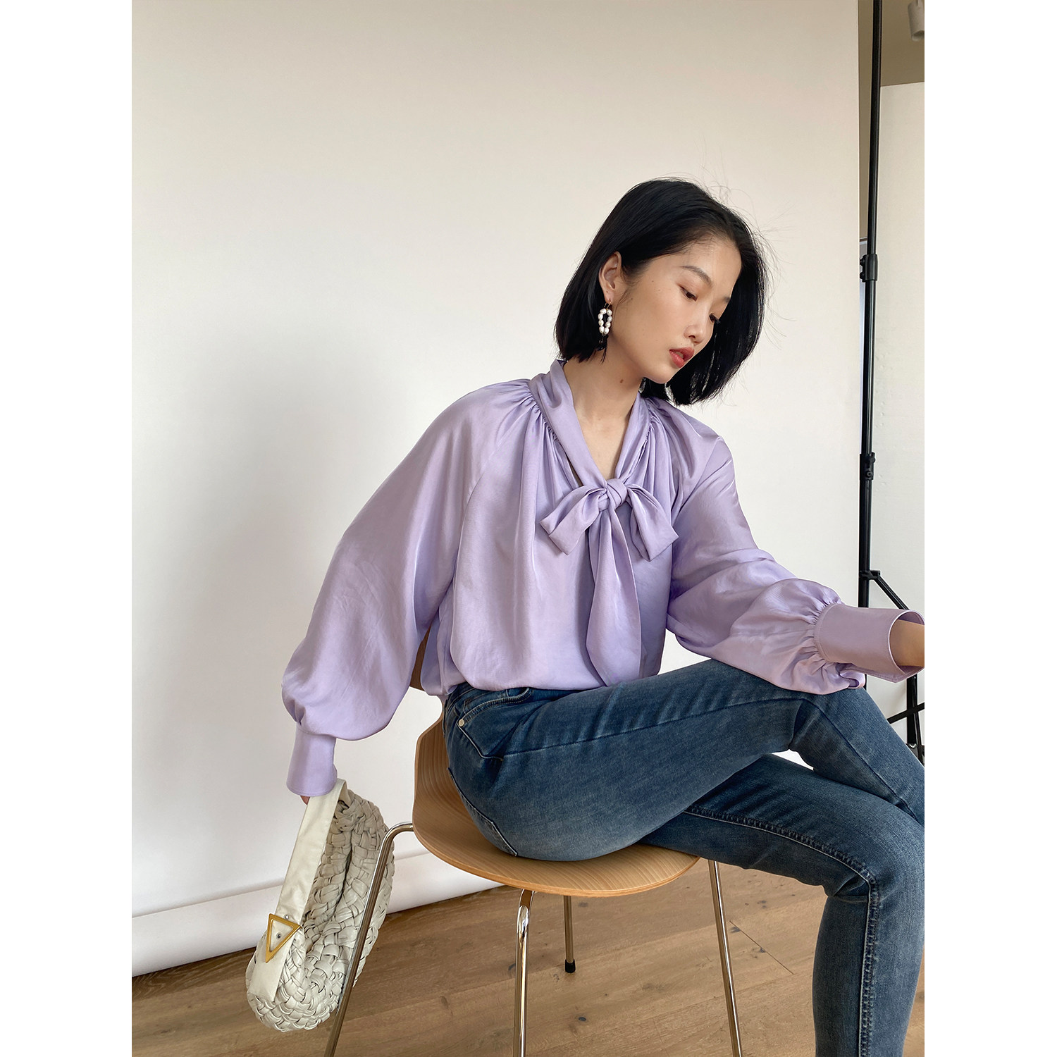 MRS Studios early spring new French style retro blouse design sensation small Japanese triacetate floating with shirt