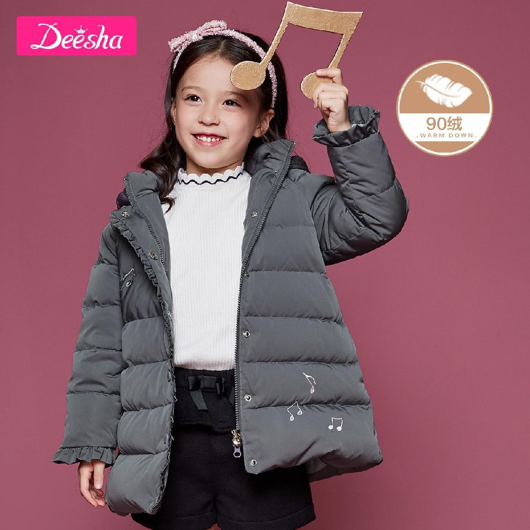Deesha winter new girls' baby girl children's mid-length embroidered hooded mid-length down jacket