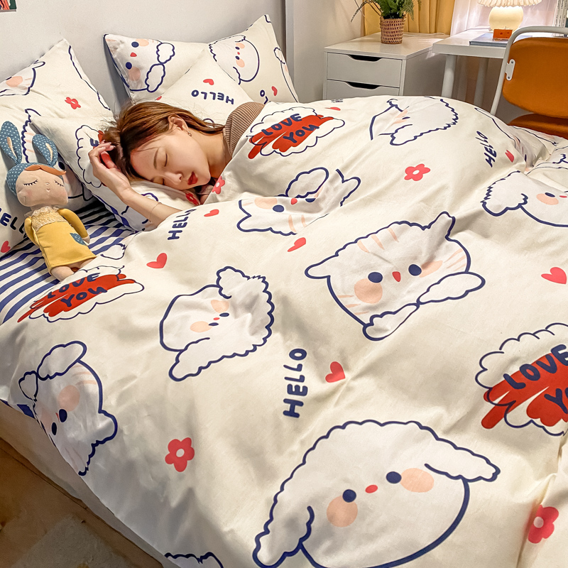 Jie Liya bed four-piece set Cotton bed Simple quilt cover Cartoon trend bed Li bed product three-piece set