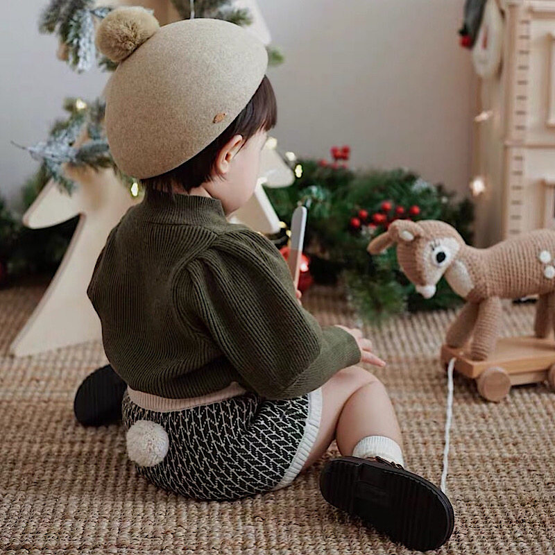 Red Bunny Shorts Green Bunny Shorts White Wool Sweater Green Puff Sleeve Knitted Sweater Festive Red Puff Sleeve Knitted Sweater Navy Blue Bunny Shorts Orange Bunny Shorts Turquoise Full Wool Sweater