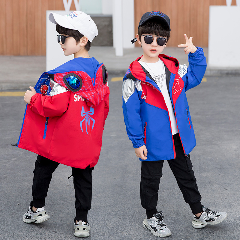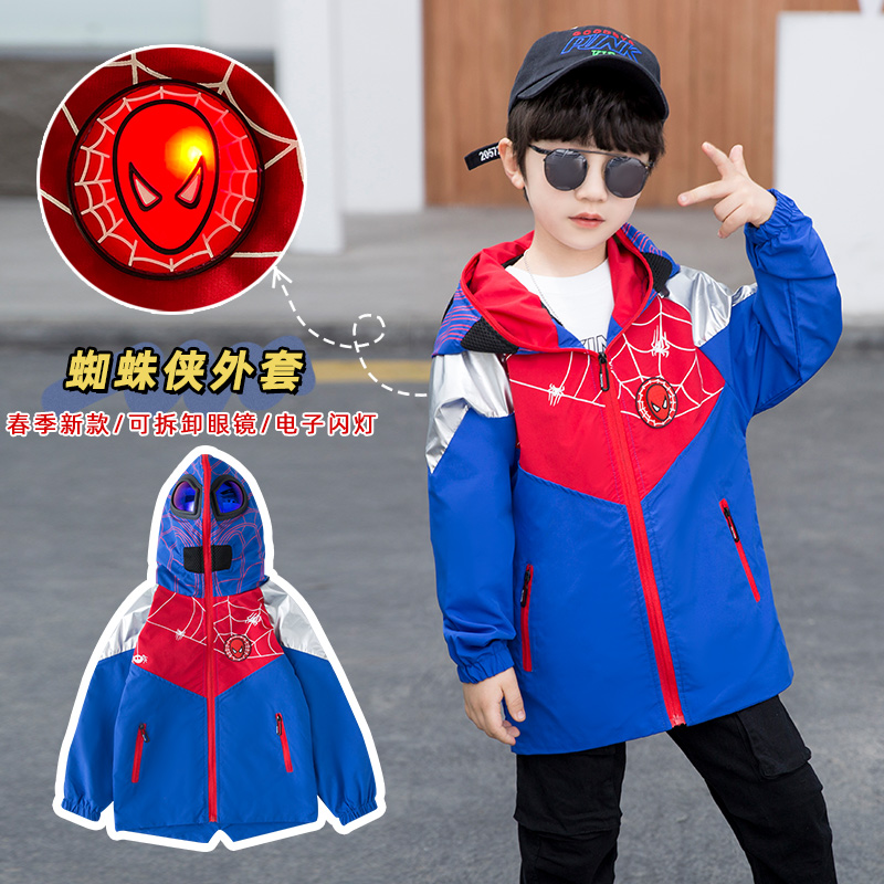 Boy Spider Man Coat 2022 Spring New Pint Cartoon Ottman Windjersey Boy Handsome light glasses blouses