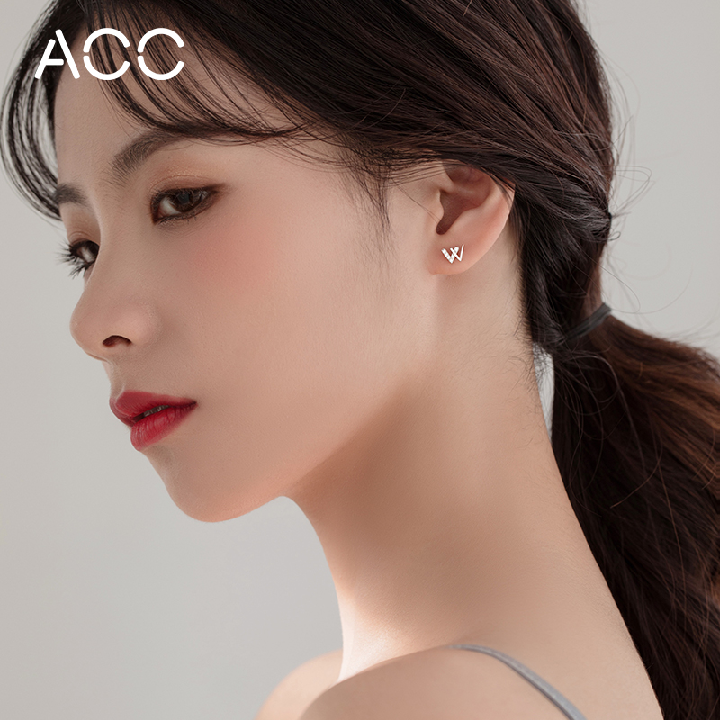ACCW Earpin Pure Silver Alphabet Earrings Woman 2022 New Tide Korea Ins Temperament Small Advanced Sensation Ear Accessories