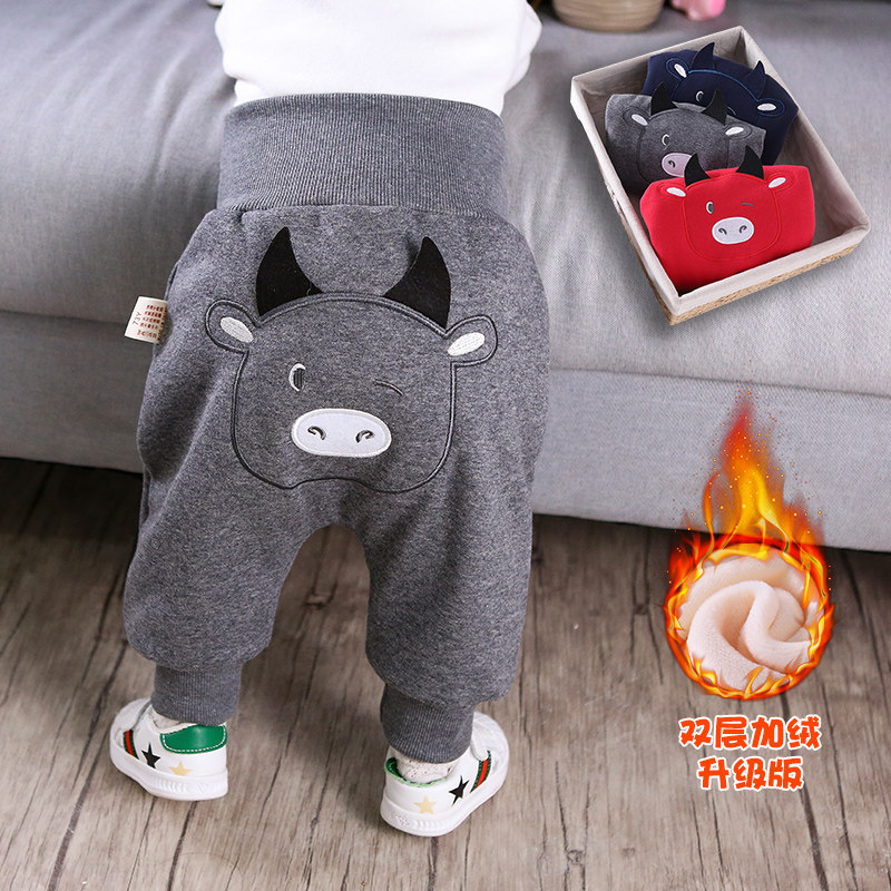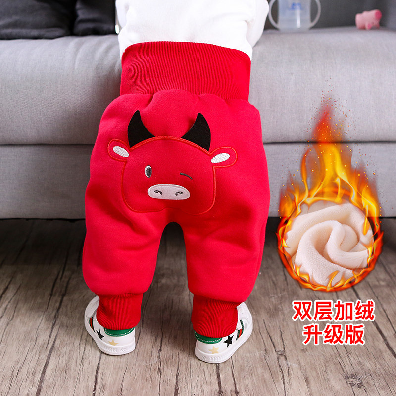Baby fleece PP pants winter men and women baby autumn and winter thickened warm trousers high waist belly protection outer wear pants children