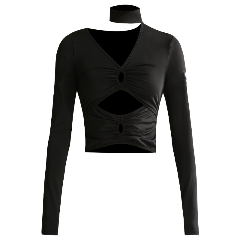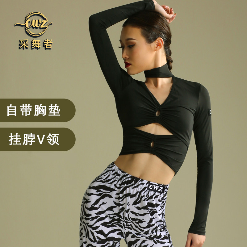 CCWZ Latin dance dress female adult new dance blouses V collar Waist Sexy Exercises Long Sleeve Hanging Neck Training Clothing