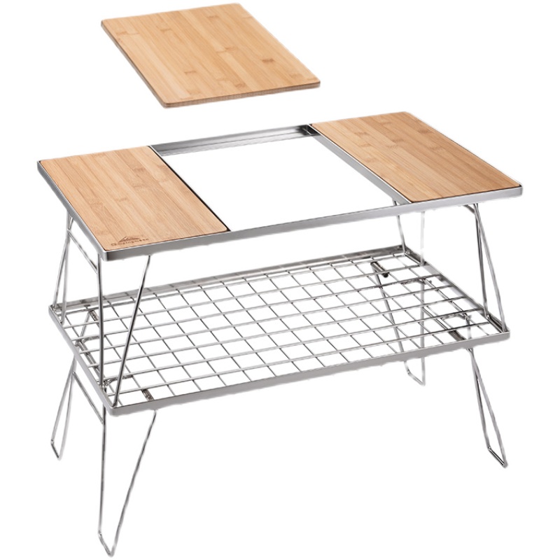 Coman outdoor tea table self-driving folding simple stainless steel bamboo stove inlaid table kitchenware barbecue table
