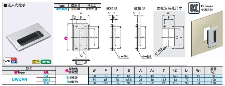 Stainless steel embedded pull UWUAN94 109 5 138-B N