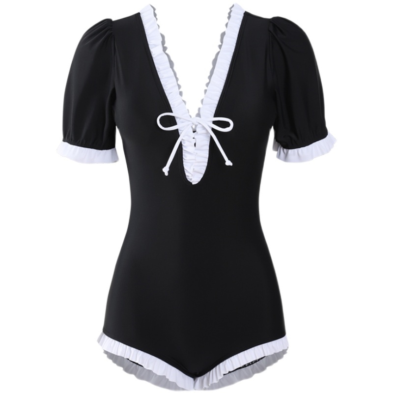 Swimsuit women's 2021 new one-piece short-sleeved v-neck black belly cover thin student conservative Korean version of hot spring swimsuit